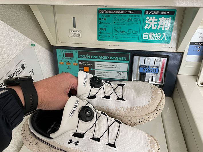 「本当に…?」と思ったので、ランニングがてら近くのコインランドリーに行き、スニーカー専用の洗濯機と乾燥機にかけてみました。