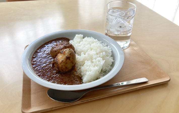 スパイシーなカレーにゆで卵のまろやかさが絶妙に合い、お肉なしでもしっかり満足感アリ。