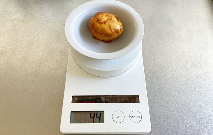 カレーに入っていたゆで卵1個の重さは、測ってみたところ44g。