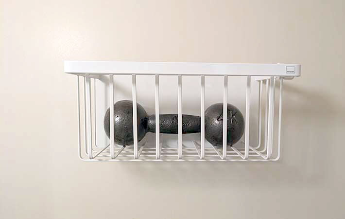 本体の耐荷重は約3kg。試しに4kgの鉄アレイを入れてみましたが、バスケットがずり落ちることはありませんでした!