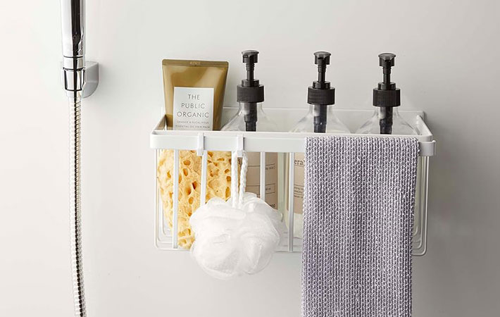 浮かせる収納を叶えてくれる山崎実業『tower』の『マグネットバスルームバスケット』
