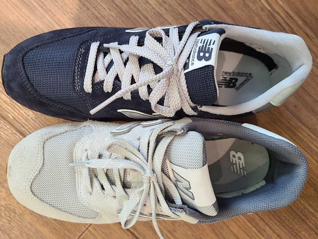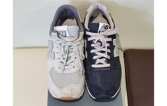 574はウイズ(横幅)をやや細いDと標準の2Eの2つから選ぶことができます。996を履いて窮屈だと感じた人は、574を選んだほうがしっくりとくるかもしれません。