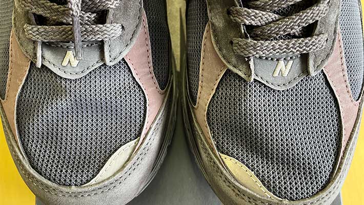 スエード部分だけでなく、メッシュ部分にもアタリを出すなど、細かな仕掛けが施されています。