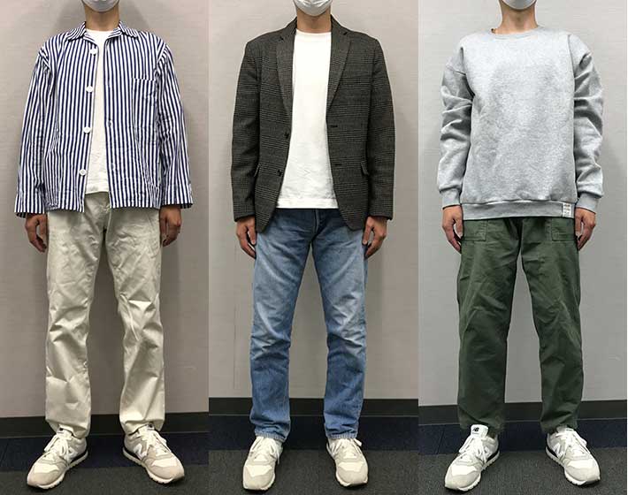 写真左は清潔感のあるコーディネートをしたつもりでしたが、某コンビニの制服のようですね…。