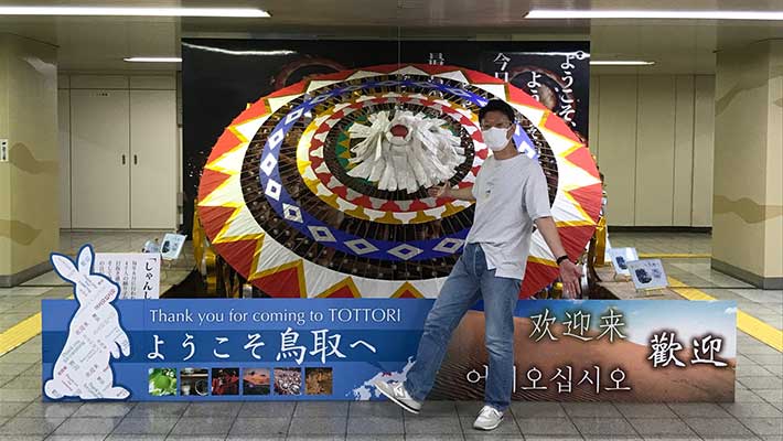 ※初日、鳥取駅にて。久しぶりの旅行に浮かれるドルフィン