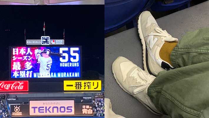 偉業を目撃した瞬間の足元はニューバランス『996』。