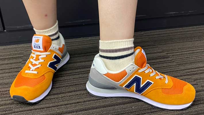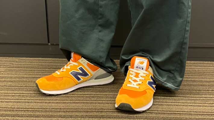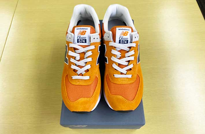 ちなみに、渋谷駅で男性が同じオレンジのニューバランス『574』を着用していました。