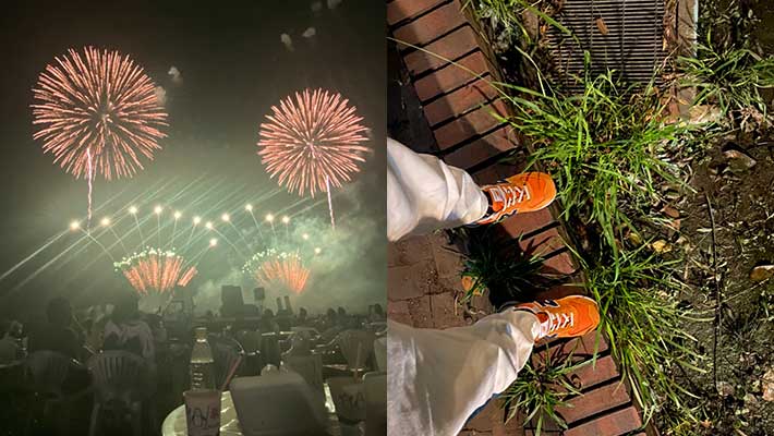 花火以外にも、1週間で4度計28時間ニューバランス『574』を着用したムトウ。
