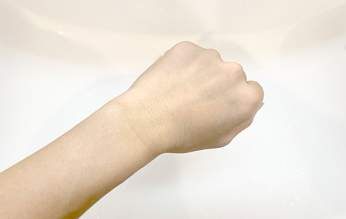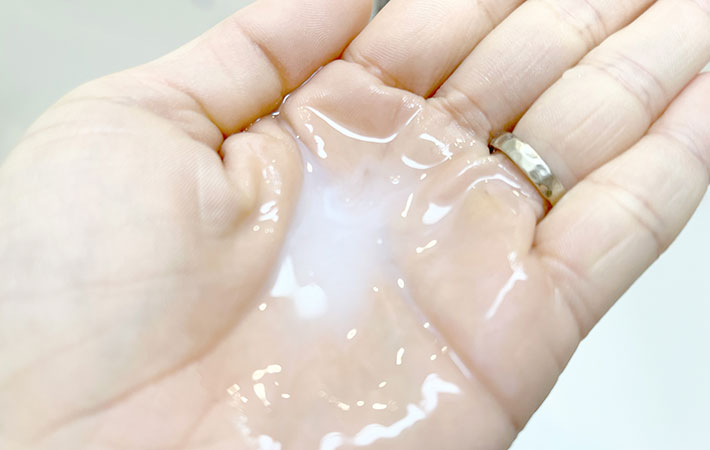 無色透明のオイルは、とろみがありながらもやや軽めのテクスチャー。