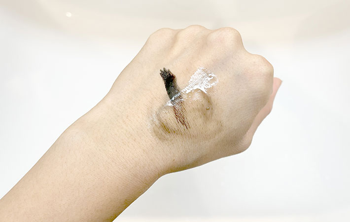 少し水を含ませると、写真のようにほんのり白く乳化して、テクスチャーがよりマイルドになりますよ。