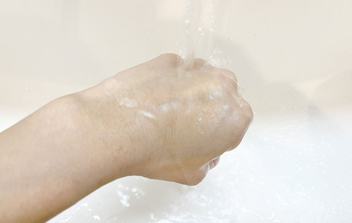 やさしい力でくるくると馴染ませると、わずか10秒程度でジュワッと溶けていく感覚が…!