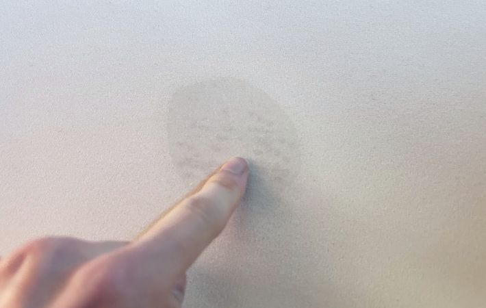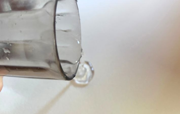 垂らしすぎてしまったのか、思いっきり弾いています!水滴がそのまま表面を転がっていくほどで、「え、本当に吸収するの?」と疑ってしまいました。