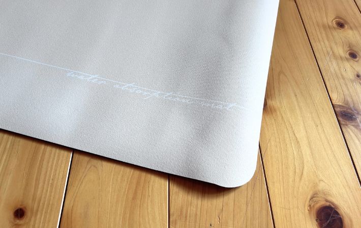 布製のマットだと、どうしてもじめっと感が残りがちで不快感と戦う羽目になりますが、速乾性に優れているおかげで、次に使う人が足を乗せても湿っている感がなく快適なんです。