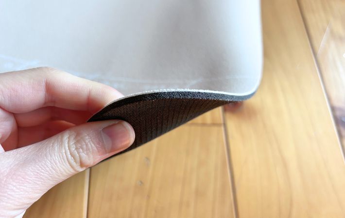 「裏面に滑り止め加工が施されている」とは表記されていませんでしたが、床にしっかり密着するのでズレず安心して使えそうです。