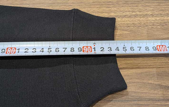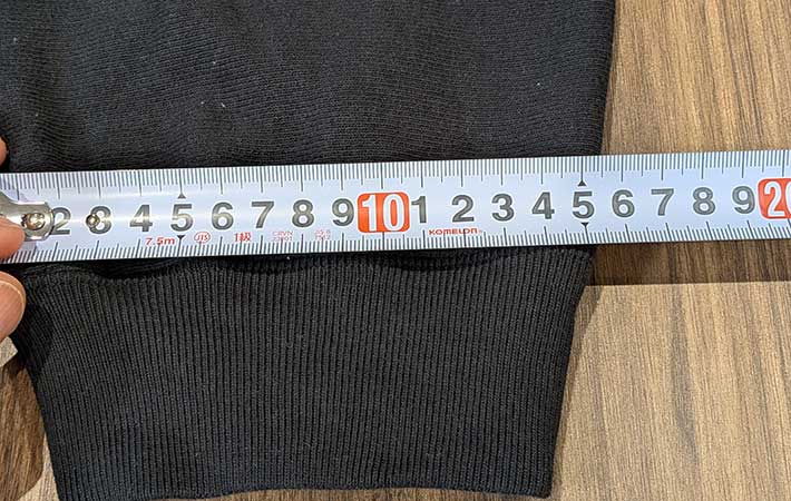 リバースウィーブが縦方向の縮みに強いことは分かりましたが、ウールやコットンなどのウェアを洗濯すると、数cm縮むというのは当たり前のこと。