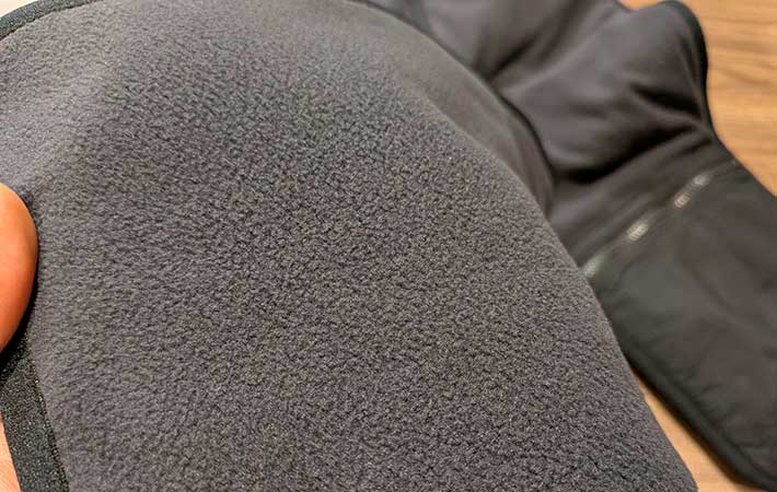 フリース素材で保温性が高く、それでいて中綿が入っているので防風性も悪くありません。
