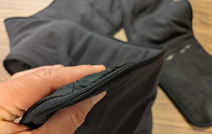 中綿にはリサイクルポリエステルが封入されており、厚みもあり薄さは感じません。