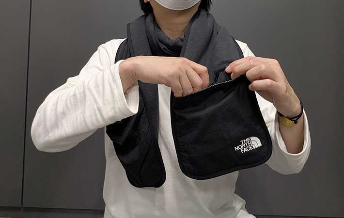 ノースフェイスのフリースマフラーに便利な秘密! 用途が広い!