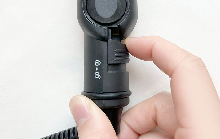 プレートのロックを外すと上部がぱっかり開いて、髪を挟める状態に。