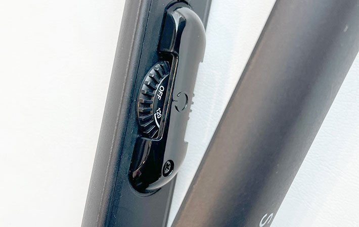 ダイヤルがアイロンの内側にある点にも注目。使用中に誤って触ってしまうこともありません。