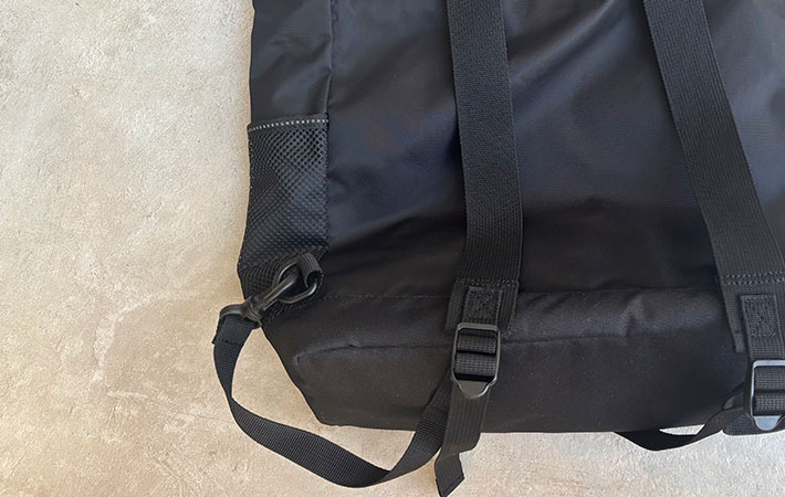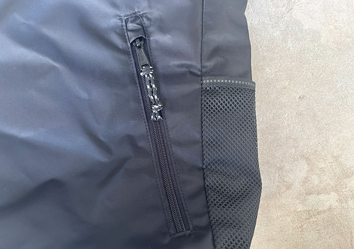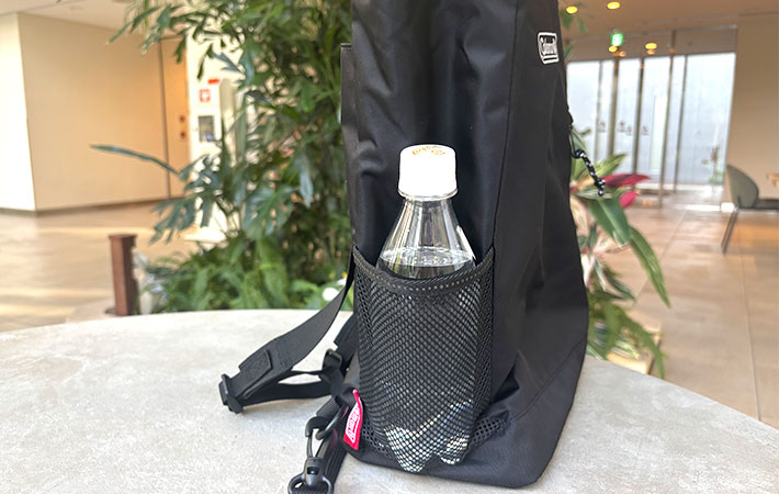 両サイドには500mLペットボトルが入るメッシュポケットもついています。
