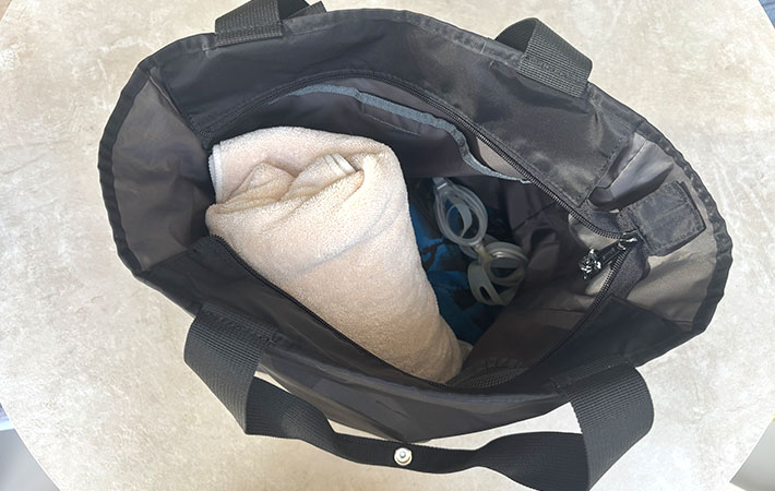 生地は水に強いナイロン素材なので、脱水後の水着を持ち帰る時も気兼ねなく使えました。