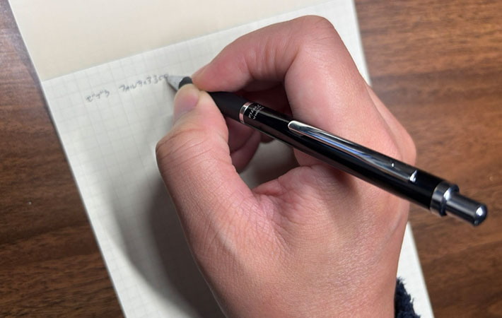 書き心地については、いわゆる普通の油性ボールペンといった感じ。滑らかな書き心地を求める人には物足りないかもしれません。