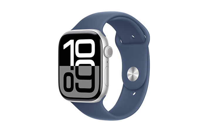 Apple Watch Series 10(GPS + Cellularモデル)- 46mmシルバーアルミニウムケースとデニムスポーツバンド – S/Mを組み合わせたスマートウォッチ。フィットネストラッカー、血中酸素ウェ ルネスアプリと心電図アプリ、常時表示 Retina ディスプレイ、耐水性能