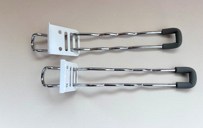 素材・材質:本体:スチール(クロムメッキ)、滑り止め:発泡EVA樹脂、止め具:スチール