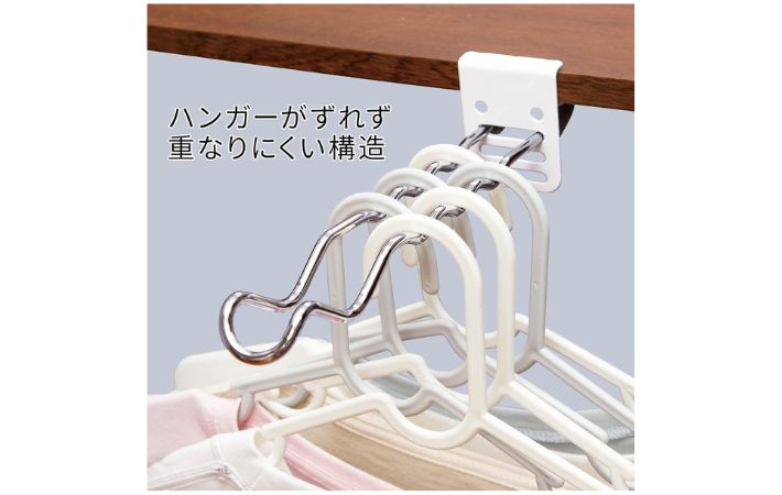 さらに、溝が両側に位置をずらしてあるデザインおかげで、ハンガーを複数掛けても衣類同士が重なりにくく、部屋干しでも乾きやすいです。