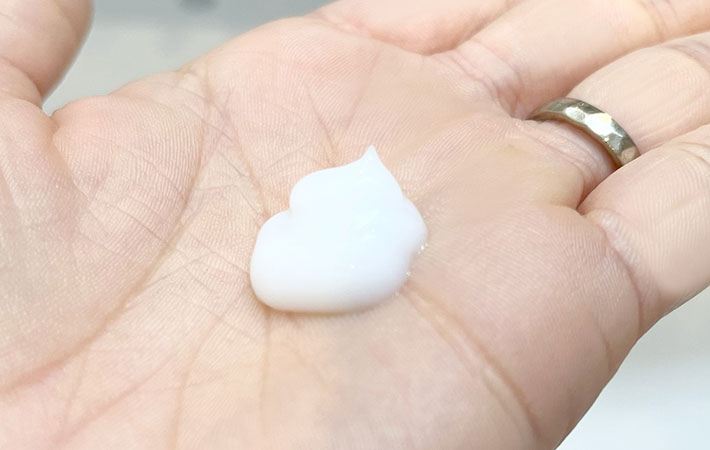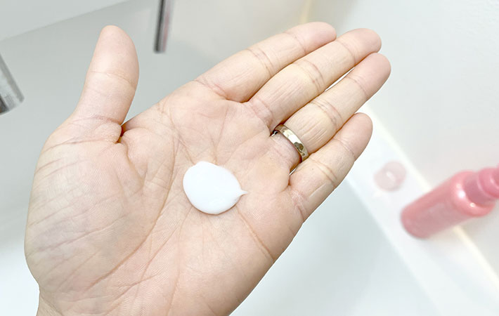 1プッシュして、『エッセンスインヘアミルク』を手のひらに取り出してみました。