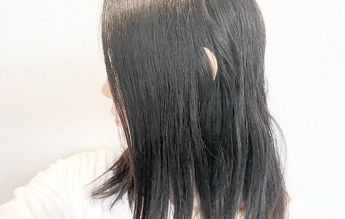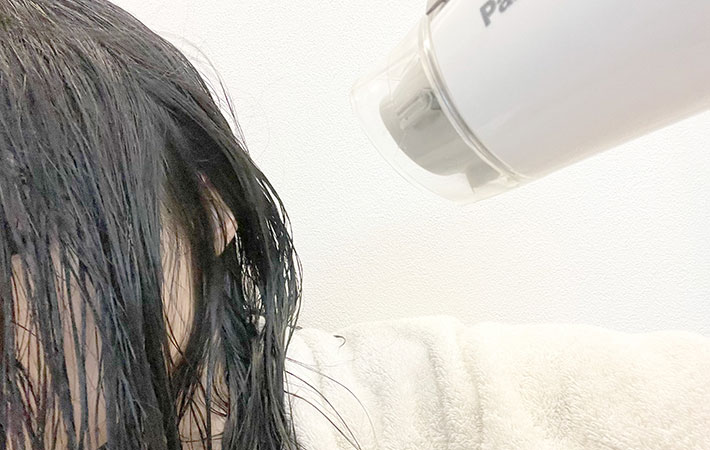 しっかり馴染ませた後は、いつも通りドライヤーで髪の毛を乾かしていきます。