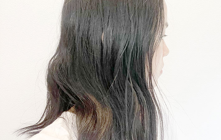 今回は比較のために、全体には塗らずに髪の半分だけに馴染ませることにしました。
