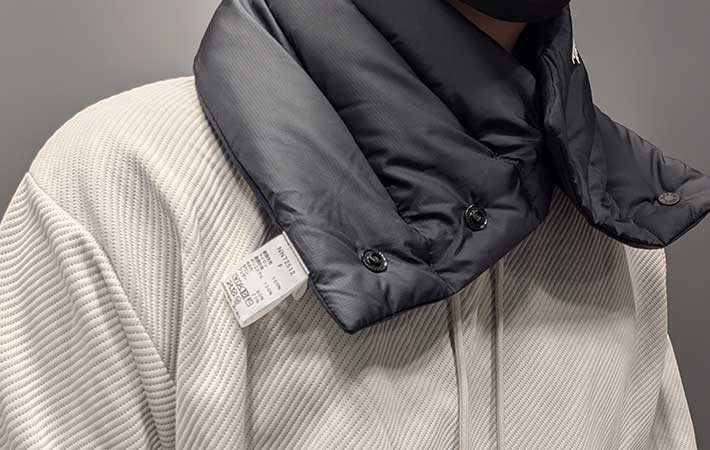 ボタンを全部使うと、首を完全に隠すことができ、口元までカバーすることができます。
