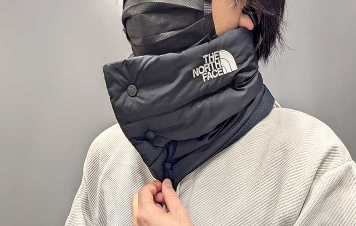ノースフェイスでも人気の高い、ヌプシシリーズのネックウォーマーを使ってみました。