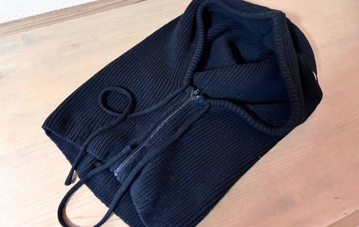 自転車で外出する際に『THE HOOD KNIT』を試してみました。