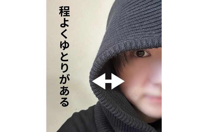 また、フードに適度なゆとりがあり、ぴったり張りつきすぎないのでメイクがこすれてついてしまう心配が少ないんです。
