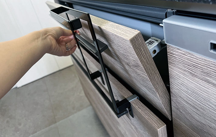 上の引き出しを開けようとすると、タオルハンガーを付けた引き出しも一緒に開いてしまったのは少し残念でした。