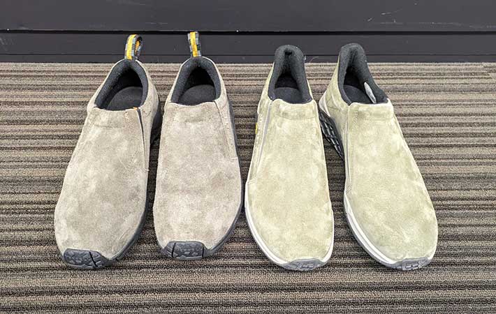 26.5cmがジャストサイズの筆者が、27cmのジャングルモックとジャングルモック2を履いてみて、変わったところなどを検証していきます。