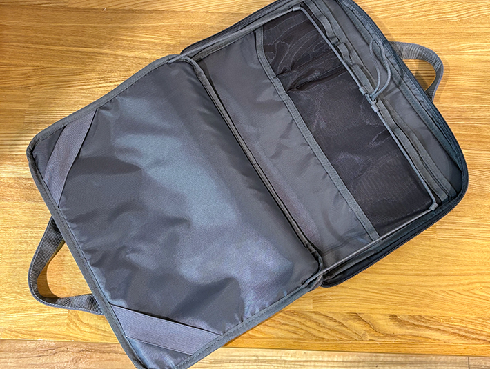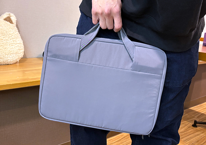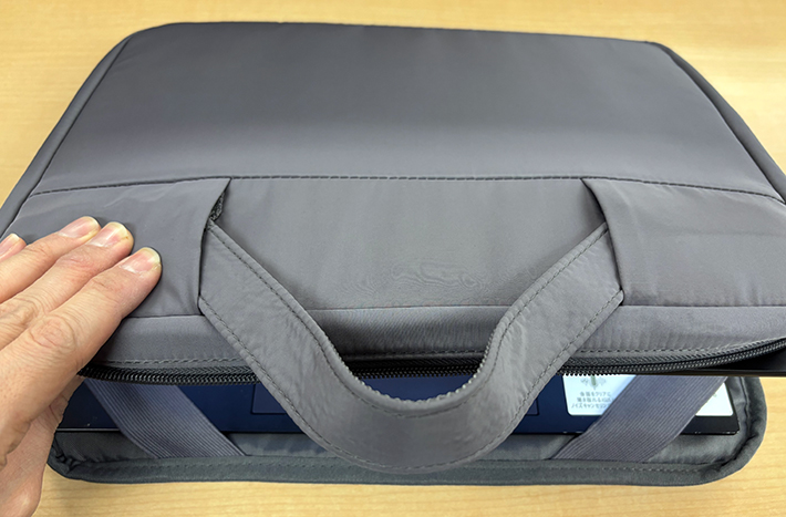 一見すると、よくあるパソコンケースですが、クッションと板が内蔵されており、収納するノートパソコンを衝撃からしっかりと守ってくれそうです。
