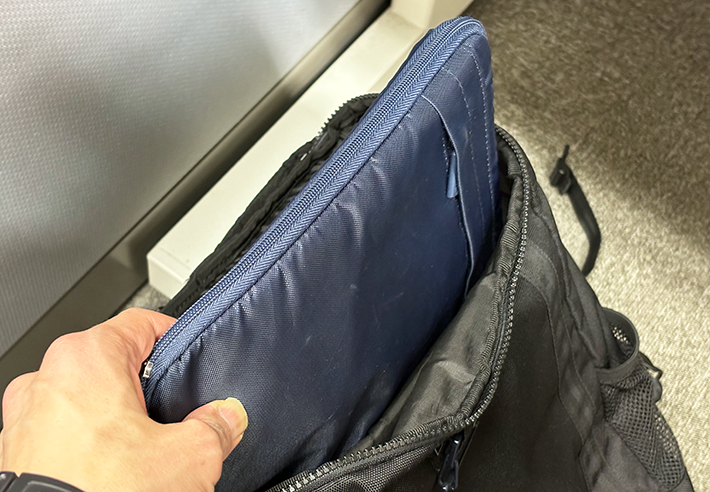 いつもなら、カバンからケースを取り出して、ノートパソコンをしまう手間がありました。