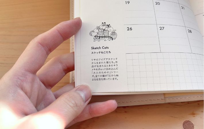 表紙にも描かれている『スケッチねこたち』が月ごとに登場し、めくるたびにワクワクが止まりません…!