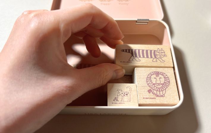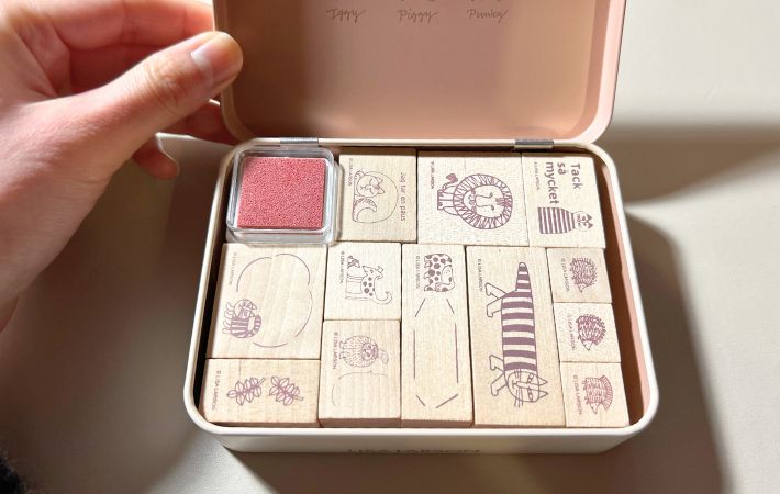 使用後はブリキのケースにしまうと、スタンプがバラバラせず安心。