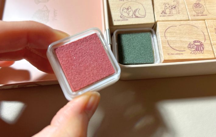 ピンクとグリーンのインクがついてくるから、すぐに使えるのも嬉しいポイント。