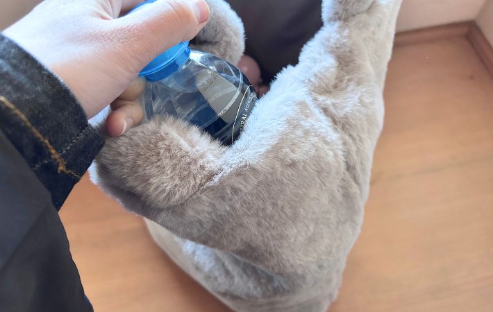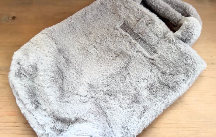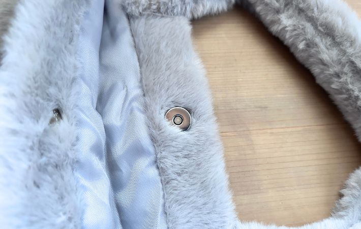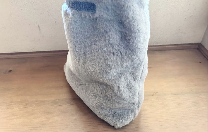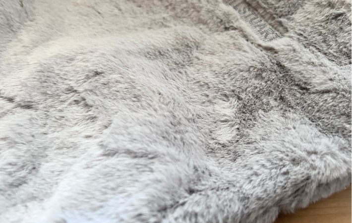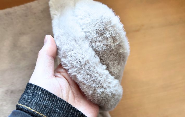 グレーのファーはやわらかく、ずっと触れていたくなるくらいふわふわ、もこもこでリッチな質感。