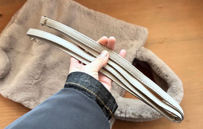 ショルダーストラップをつけて肩掛けしたら身軽になれて持ちやすく、たくさん歩く日のお出かけに向いていました。