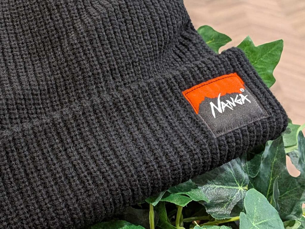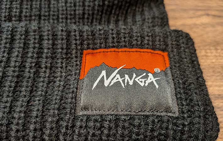 形はツバのないビーニータイプで、とてもシンプル。折り返しのフロントサイドにナンガのロゴマークがついています。