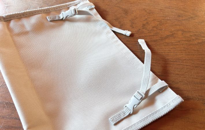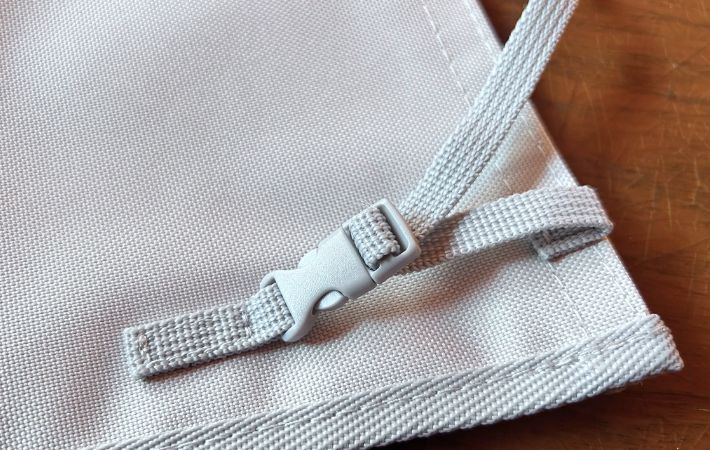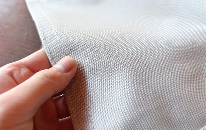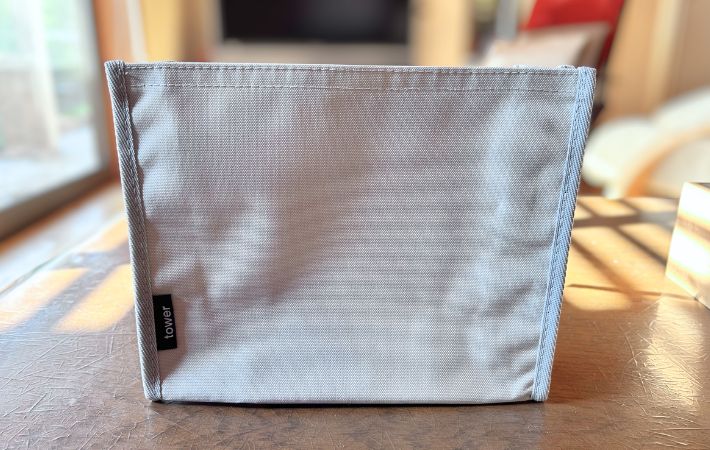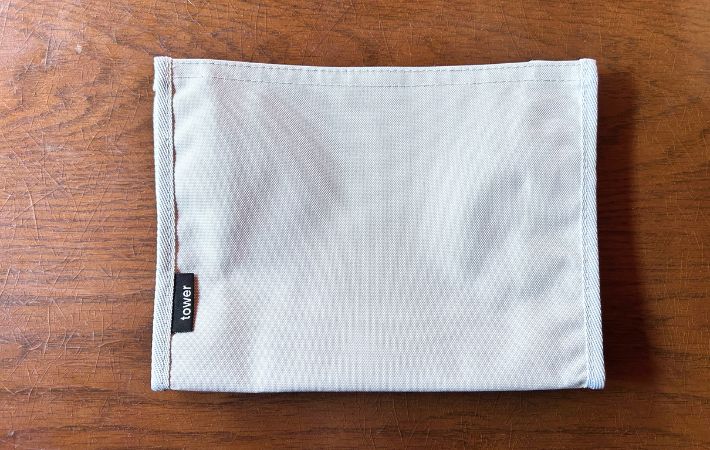素材は勝手に自立するくらい丈夫なポリエステル生地。少々濡れてもへっちゃらな耐久性の強さを感じます。
