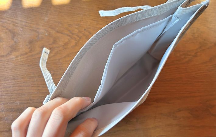 ファスナーもボタンもついていない大きく開く開口部のおかげで、必要なものをサッと出し入れしやすい仕様になっていますよ。