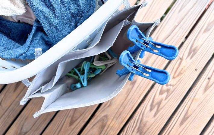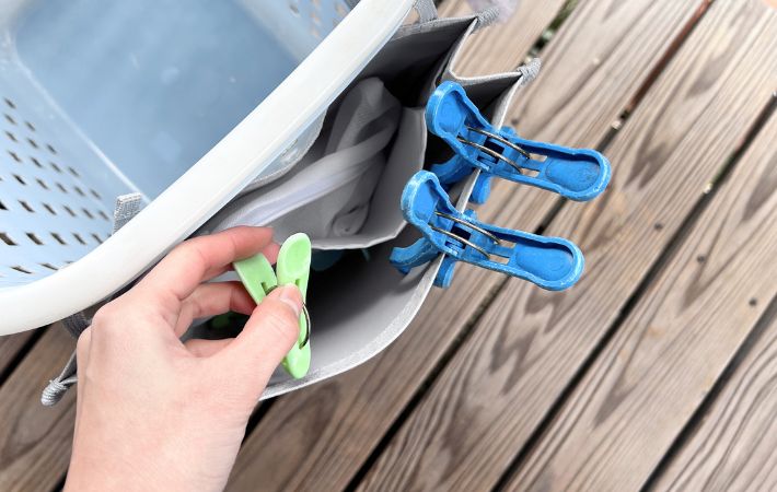 洗濯物を干す時も必要なピンチがひとまとめになっているので、サッと取り出せて快適。